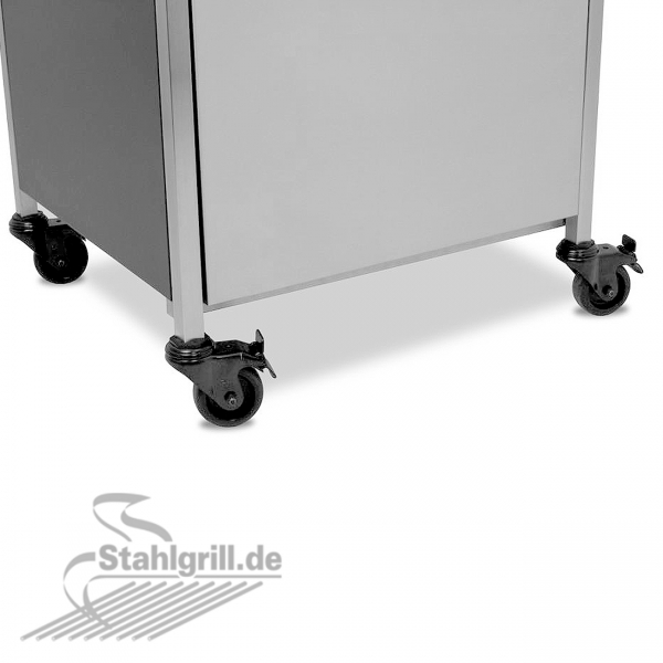- der Grillschrank verfügt über eine große Schranktür und eine voll ausziehbare Schublade